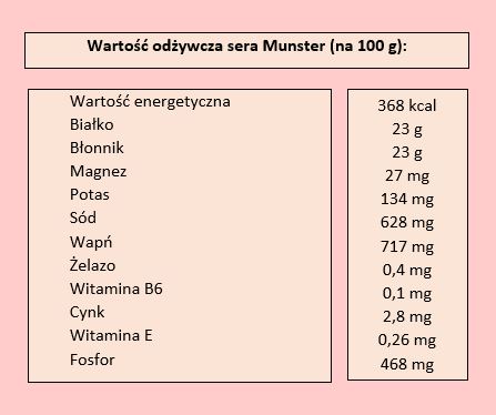Chociaż zapach sera Munster, może skutecznie zniechęcić, to warto mu dać szansę. O serze Munster mówi się, że pomimo tego że, ma diabelski zapach, ale za to całkowicie niebiański smak. Trzeba dużo samozaparcia i odwagi, żeby skosztować tego aromatycznego francuskiego specjału, ale za to delikatny smak wynagrodzi wszelkie zapachowe niedogodności. Ser Munster zawiera wiele cennych składników odżywczych, dlatego od czasu do czasu powinniśmy go włączyć do naszego jadłospisu. Na jego bazie można przygotować wiele smacznych i oryginalnych dań oraz szybkich przekąsek. Ciekawe urozmaicenie naszego codziennego menu.
