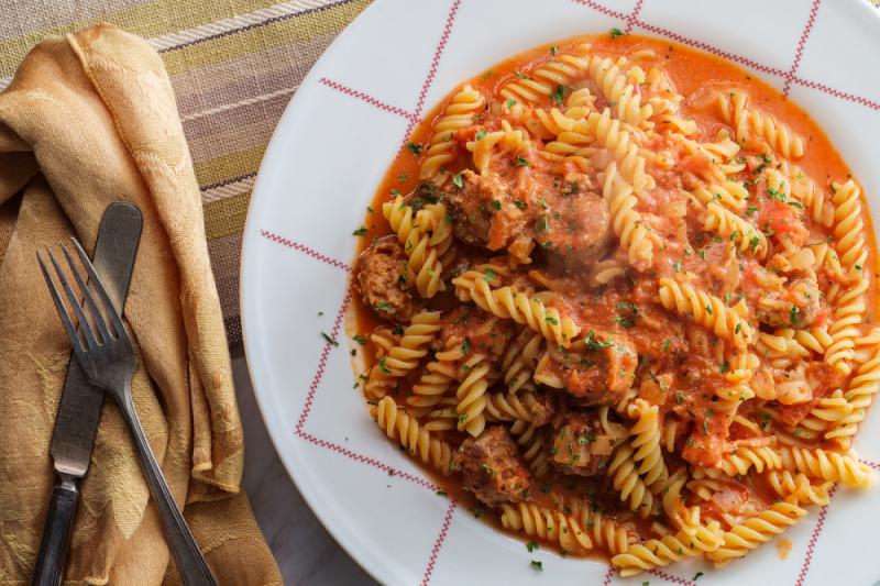 Makaron bezglutenowy z sosem pomidorowym. Źródło: shutterstock