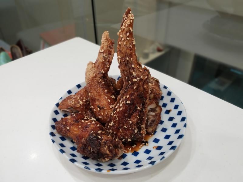 Umytą i osuszoną wieprzowinę kroimy w podłużne kawałki o grubości ok. 1 cm i długości 4-5 cm. Składniki sosu łączymy w małym garnuszku i podgrzewamy. Gotujemy na małym ogniu, aż sos zgęstnieje – powinno być go ok. pół szklanki. W mięso wcieramy przeciśnięty przez praskę czosnek i dodajemy 2/3 ostudzonego sosu. Dokładanie mieszamy i odstawiamy na minimum 4 godziny, optymalnie na całą noc. Olej łączymy z resztą sosu i przechowujemy w lodówce. Nagrzewamy piekarnik do temperatury 195 stopni C. Mięso przekładamy na blachę wyłożoną folią aluminiową i pieczemy 20 minut. Po wyjęciu z pieca i ostygnięciu nakładamy na metalowe szpikulce do szaszłyków i smarujemy pozostałym sosem, a następnie opiekamy na grillu lub patelni grillującej. Podajemy z białym ryżem.
