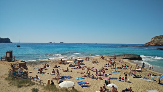 Intensywny turkusowy kolor to znak rozpoznawczy tej najbardziej znanej plaży na Ibizie. Jako, że leży na zachodzie wyspy, jej wody są wyjątkowo czyste. To miejsce bardzo popularne, bo widoki tak na mieszczącą się na przeciwko wysepkę S’Illa des Bosc jak na otaczający krajobraz są nie do pobicia. Plaża nie ma zbyt wielu miejsc krytych, w których można schronić się przed słońcem, dlatego dobrym pomysłem będzie zabranie parasoli i kremów z wysokimi filtrami. Wieczór natomiast najlepiej spędzić w jednym z pobliskich chiringuitos (restauracji na plaży) i wraz z innymi plażowiczami cieszyć się najlepszym zachodem słońca na wyspie.