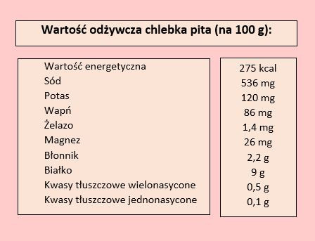 Pita to znakomity zamiennik tradycyjnego pieczywa. Jeśli znudziło nam się jedzenie kanapek ze zwykłym chlebem, warto samemu przygotować ten w wersji śródziemnomorskiej. Znakomicie sprawdzi się zarówno jako przekąska w zestawie z sosami i dipami, ale także jako danie główne z mięsnym lub wegetariańskim farszem. Sama pita nie jest kaloryczna, wszystko zależy od dodatków, na się które zdecydujemy. Dlatego w trosce o nasze zdrowie i sylwetkę, warto przygotowywać pitę w różnych wariantach.