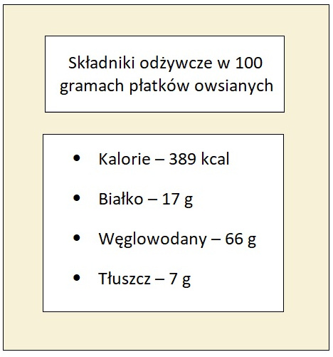 GRAFIKA WŁASNA Źródło: https://kalkulatorkalorii.net/kalkulator-kalorii/386-100-platki+owsiane