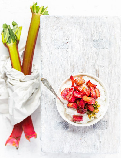 Rabarbar najlepiej podawać na ciepłym, kokosowym ryżu, z odrobiną syropu daktylowego.