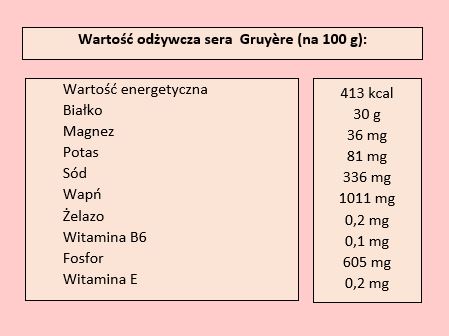 Ser Gruyère nie jest zbyt popularny w naszym kraju, ale można go kupić w kilku większych supermarketach. To ciekawy zamiennik znanych nam do tej pory serów. Z dodatkiem sera Gruyère można przyrządzić wiele ciekawych potraw, które będą bardziej wyraziste w smaku. Stanowi to ciekawe urozmaicenie naszego codziennego jadłospisu, a przy tym dostarczymy naszemu organizmowi wielu cennych witamin i minerałów niezbędnych do prawidłowego funkcjonowania.