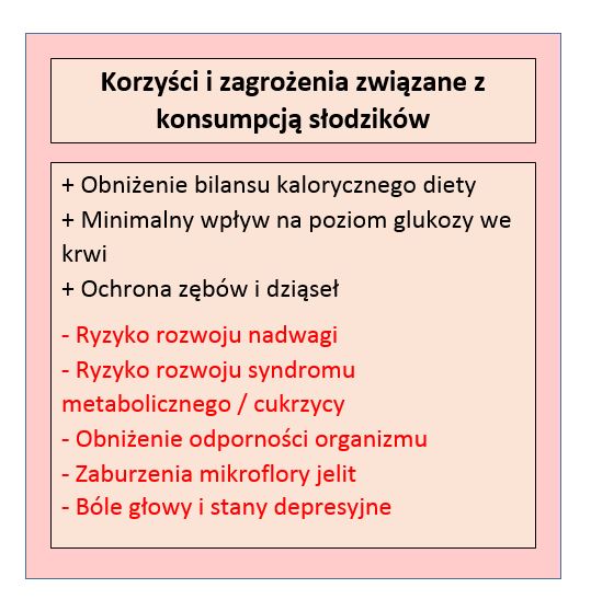 Dodajmy, że nawet naturalne słodziki, reklamowane jego zdrowe, stwarzają znaczące ryzyko rozwoju otyłości, próchnicy zębów, cukrzycy, a także zwiększonego poziomu trójglicerydów we krwi!