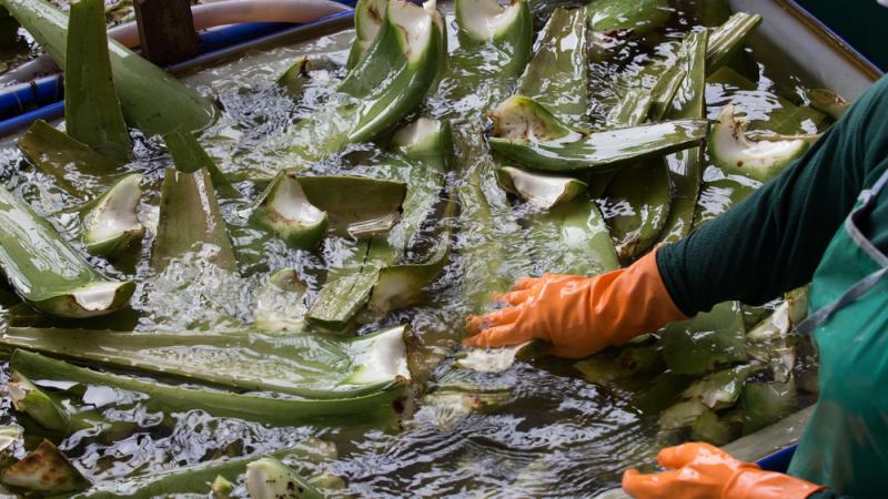 Dojrzała, czteroletnia roślina aloesu posiada około 12-16 liści, a raz na miesiąc można pobrać z niej 3-4 zewnętrzne liście. W ten sposób plantacje aloesu dają się eksploatować praktycznie non-stop, dostarczając nieprzerwanie cennego surowca. A skala upraw jest gigantyczna, gdyż Aloe vera uprawia się dziś masowo w Indiach, Pakistanie i Chinach, a także Egipcie, Kenii, RPA, Brazylii, Meksyku i USA. W Europie aloes produkuje się jedynie w krajach ciepłego klimatu śródziemnomorskiego – dalej na północ możliwa jest już tylko uprawa doniczkowa.