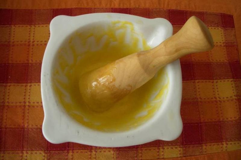 Czosnek obieramy i rozgniatamy, a następnie przekładamy do moździerza i dodatkowo ucieramy. Dodajemy po jednym żółtku i ubijamy trzepaczką. W czasie ubijania dolewamy stopniowo oliwę – mikstura powinna zgęstnieć. Na końcu doprawiamy solą i sokiem cytrynowym.