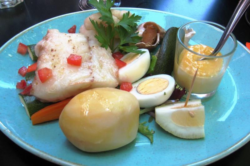 Sos Aioli jako dodatek do ryby; źródło: Varaine [CC BY-SA 4.0], via Wikimedia Commons