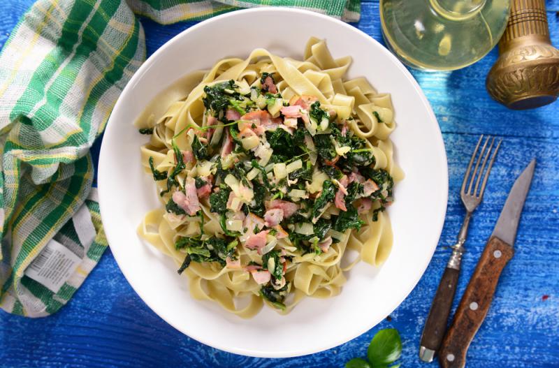 Tagliatelle ze szpinakiem i łososiem