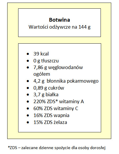 Botwina zawiera mnóstwo błonnika, flawonidów i betacyjanów. Te ostatnie nie tylko odpowiadają za charakterystycznie intensywną barwę warzywa, lecz także są silnym przeciwutleniaczem. W amerykańskiej publikacji Dietary nitrates, nitrites, and cardiovascular diseas możemy przeczytać, że substancje te pomagają obniżyć cholesterol LDL oraz chronią nas przed ryzykiem zawału serca i udaru mózgu.