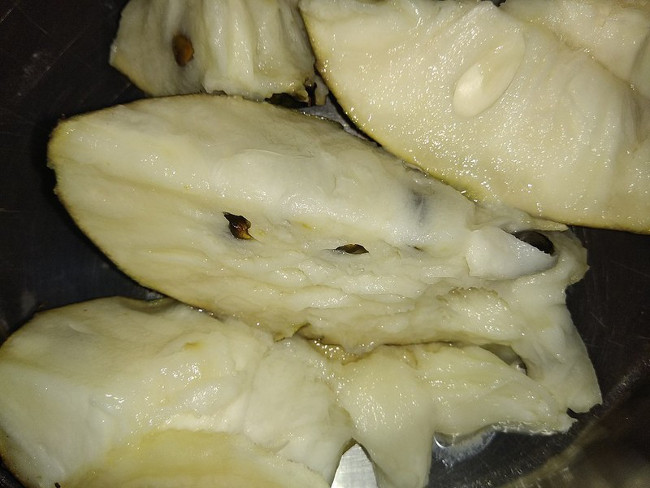Graviola dzięki swojej masie w pierwszym rzędzie była przez ludzi traktowana oczywiście jako pożywienie. Po przepołowieniu owocu zobaczymy dość zwarty biały miąższ ze sporej wielkości ciemnobrązowymi pestkami. Jedzony na surowo jest bardzo sycącym i atrakcyjnym specjałem o lekko kwaskowatym, słodkim smaku, który niektórzy przyrównują do połączenia poziomki z ananasem. Z gravioli sporządza się też soki, sorbety i sałatki, a ludność środkowoamerykańska nauczyła się również ją suszyć na smaczną i łatwą do przechowywania w ciepłych klimacie przekąskę.