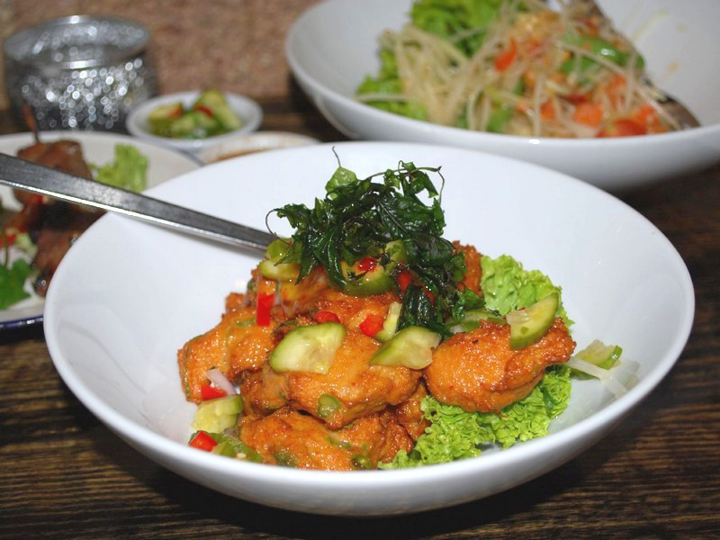 Tajskie ciasteczka rybne z liśćmi kaffiru; źródło: Wikimedia Commons