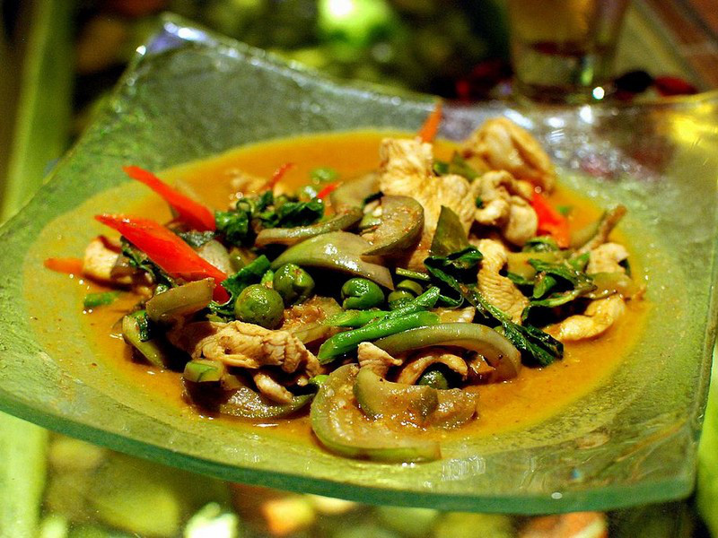 Curry z kurczakiem – danie często doprawiane liśćmi kaffiru; źródło: Wikimedia Commons