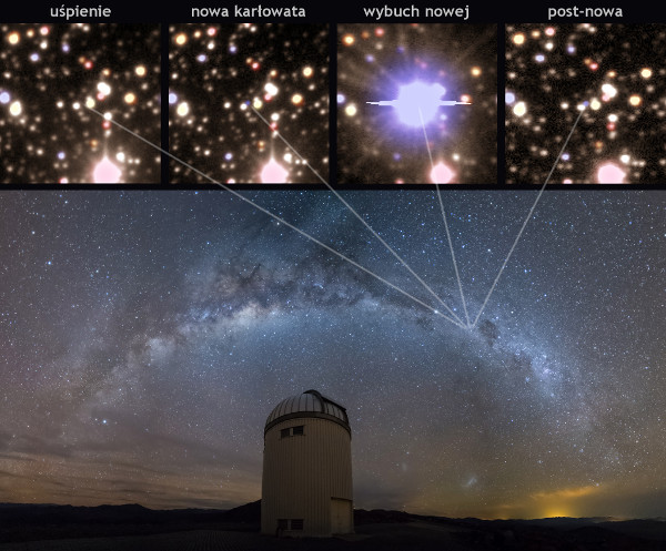 – Wybuchy gwiazd nowych należą do największych eksplozji gwiazdowych obserwowanych we Wszechświecie. W ciągu kilku godzin nowe jaśnieją ponad kilkanaście tysięcy razy, stając się jednymi z najjaśniejszych obiektów w Galaktyce – wyjaśnia Przemysław Mróz, pierwszy autor publikacji w czasopiśmie „Nature”, doktorant z Obserwatorium Astronomicznego UW.