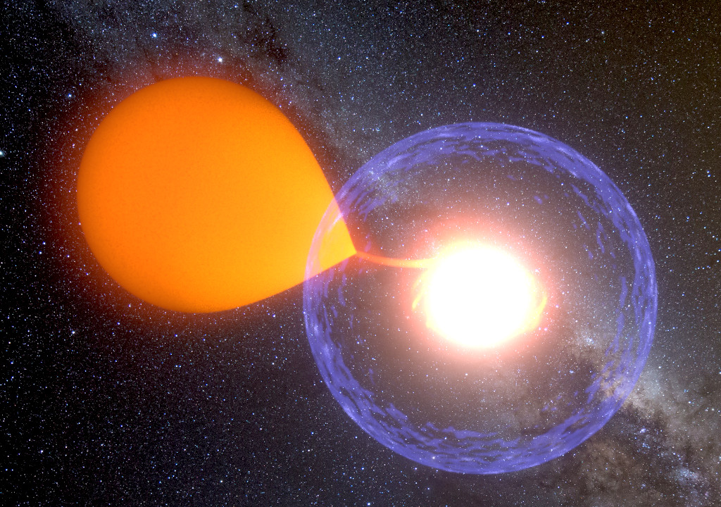 Gwiazdy nowe to układy podwójne składające się z dwóch gwiazd krążących po bardzo ciasnych orbitach – tak ciasnych, że układ zmieściłby się wewnątrz Słońca. Jednym ze składników jest biały karzeł, czyli „wypalona” gwiazda, we wnętrzu której nie zachodzą już reakcje termojądrowe.