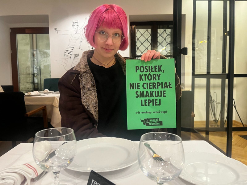 Aktywiści z Animal Rebellion Poland okupowali znaną krakowską restaurację, domagając się systemowej promocji diety roślinnej.