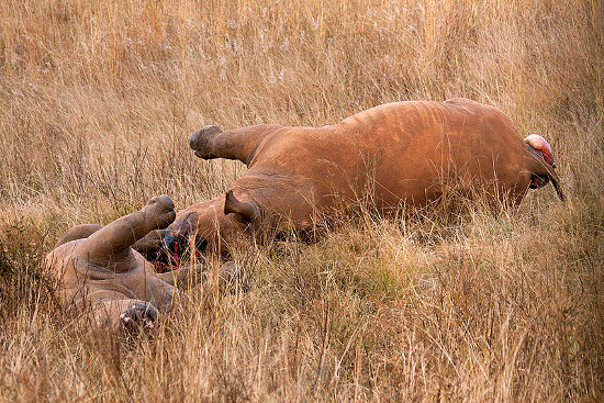 Giną zarówno nosorożce białe, których liczebność w całej Afryce szacuje się na niespełna 21 tysięcy osobników, jak i krytycznie zagrożone nosorożce czarne, których pozostało niespełna 5 tysięcy w skali całego kontynentu.