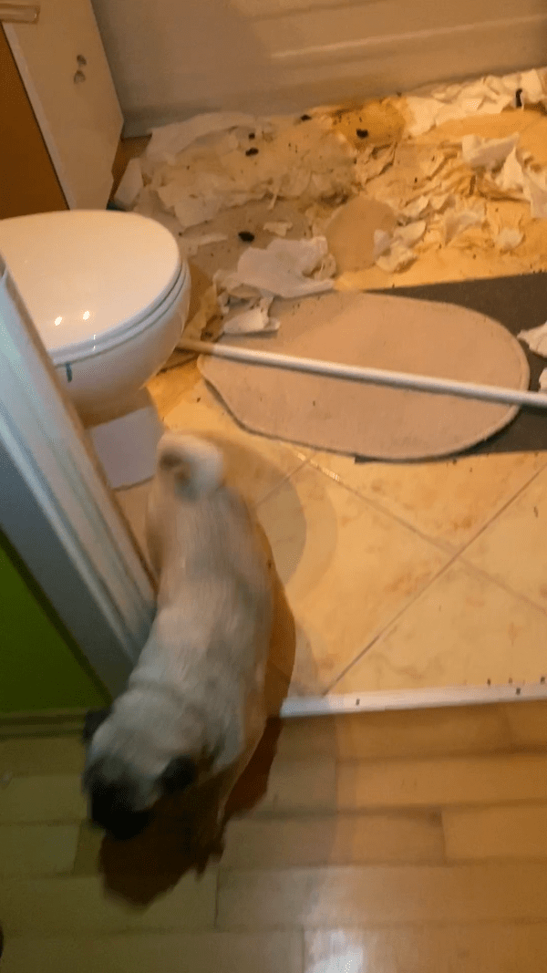 Przedstawiciele Fundacji weszli do mieszkania w asyście Policji. Od progu uderzył ich fetor psich odchodów, a w pokoju zobaczyli mopsa uwiązanego krótką smyczą do stołu. Pies siedział na brudnych szmatach, bez wody i jedzenia. W łazience, w podobnych warunkach znaleźli dwa kolejne psy – mopsa i buldożka francuskiego.