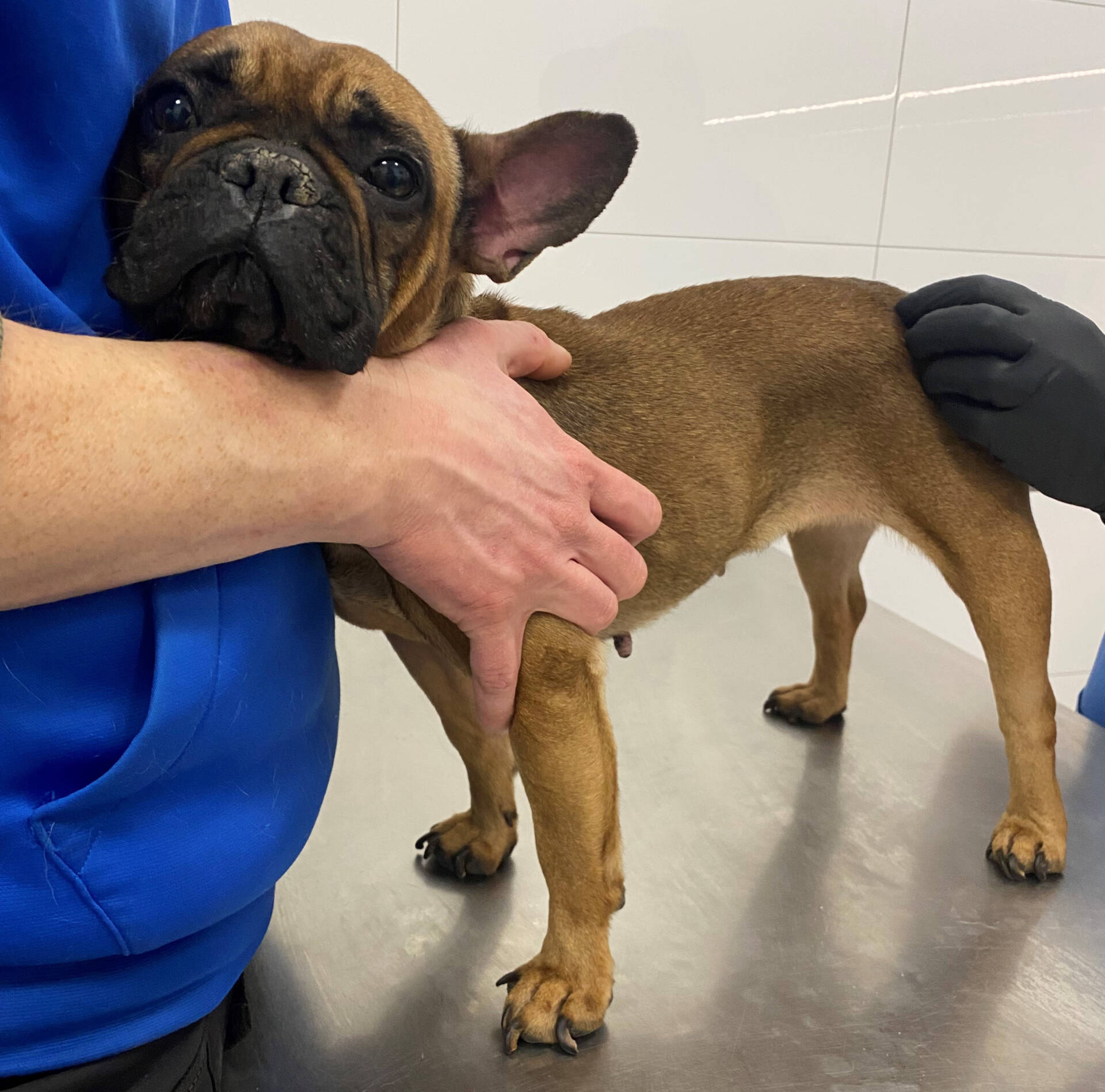 Przedstawiciele Fundacji weszli do mieszkania w asyście Policji. Od progu uderzył ich fetor psich odchodów, a w pokoju zobaczyli mopsa uwiązanego krótką smyczą do stołu. Pies siedział na brudnych szmatach, bez wody i jedzenia. W łazience, w podobnych warunkach znaleźli dwa kolejne psy – mopsa i buldożka francuskiego.