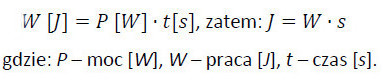 - pracy wymaganej do produkcji mocy o wartości 1 wata (W) w czasie 1 sekundy (s) zgodnie z poniższym wzorem:
