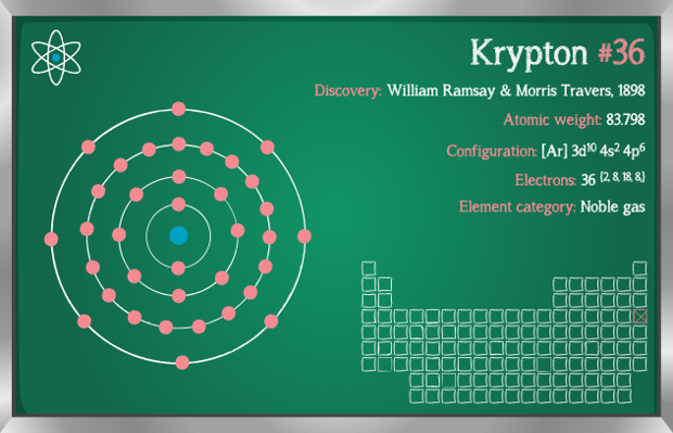 Krypton – jest pierwiastkiem chemicznym o symbolu Kr i liczbie atomowej 36. Należy do grupy helowców – gazów szlachetnych. Nazwa krypton pochodzi od greckiego słowa κρυπτός, co oznacza kryptos, czyli ukryty.
