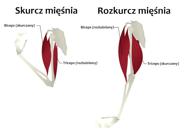 W konsekwencji zmiany potencjału czynnościowego mięśni szkieletowych z końca aksonu komórki nerwowej uwalniana zostaje acetylocholina (w miejscu przyczepu mięśnia do neuronu ruchowego występuje połączenie nerwowo-mięśniowe). Grupa przekaźników chemicznych przenika przez synapsę i stymuluje powstawanie zmian elektrycznych powstających w komórce mięśniowej podczas związania acetylocholiny z receptorami na jej powierzchni. Impuls pochodzący z komórki nerwowej powoduje uwalnianie wapnia po czym następuje pojedynczy, krótki skurcz mięśni zwany drganiem mięśni. Jony wapnia są wymagane dla każdego skurczu. Jeśli występuje problem na połączeniu nerwowo-mięśniowym, może wystąpić dłuższy skurcz.