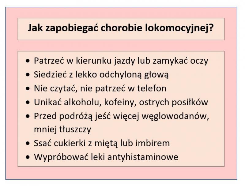 Ponadto w celu minimalizacji objawów choroby lokomocyjnej poleca się: