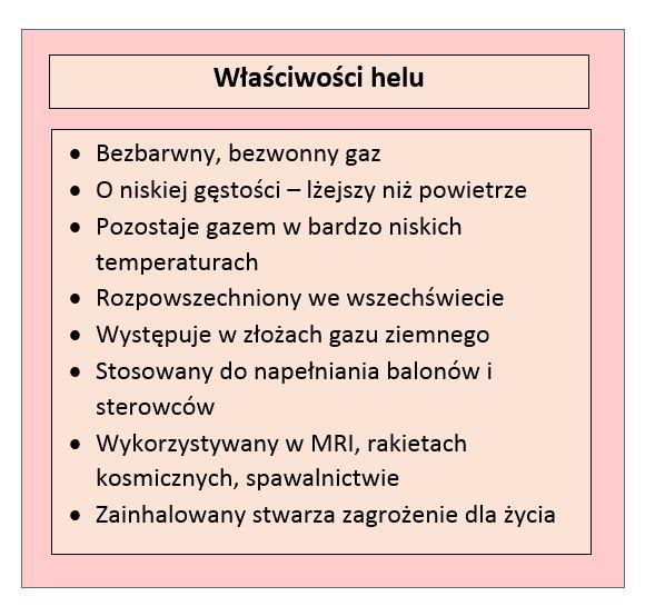 Tabela przedstawiająca właściwości helu; opracowanie własne
