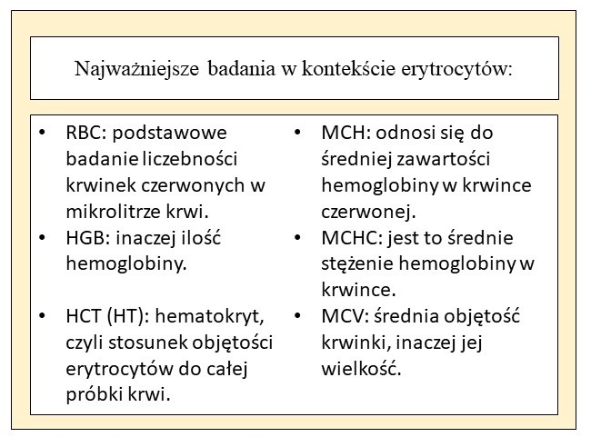 Dlatego też najważniejsze badania, jakie w ramach morfologii krwi mogą nam wskazać bezpośrednio na kwestie związane z erytrocytami, to: