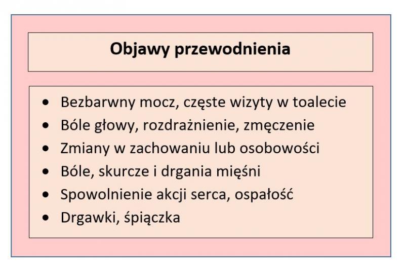 O przewodnieniu mówimy, kiedy ilość przyjmowanej wody przekracza wydajność nerek. Ta ostatnia u zdrowego dorosłego człowieka kształtuje się na poziomie 800-1000 ml na godzinę. Należy mieć jednak świadomość, że może być łatwo zaburzona z powodu choroby lub stresu fizycznego.