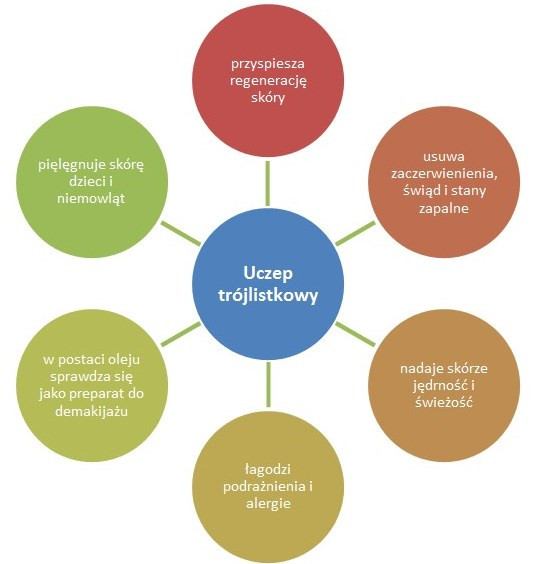 Z racji na zbawienny wpływ na naszą skórę i kojące właściwości w przypadku wielu schorzeń dermatologicznych, uczep trójlistkowy wykorzystuje się także w kosmetyce: