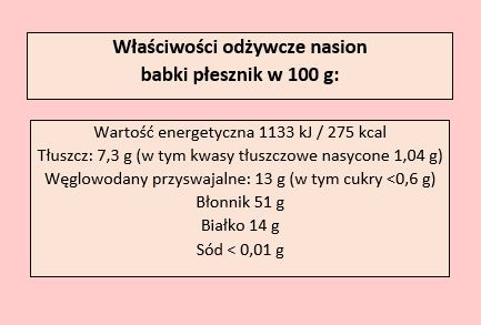 Surowcem, który wykazuje właściwości lecznice i prozdrowotne to nasiona tej rośliny, które charakteryzują się błyszczącymi ziarenkami o brązowym kolorze, gładkiej fakturze i podłużnym kształcie. Swoim wyglądem przypominają nasiona siemienia lnianego. W 100 g nasion tej rośliny znajduje się aż 68 g błonnika pokarmowego, nic zatem dziwnego, że babka płesznik coraz bardziej zyskuje na popularności. Wszystko za sprawą jej cudownych właściwości, które wykazują się pozytywnym wpływem zarówno na nasze zdrowie, jak i urodę.