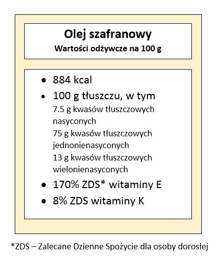 Wartości odżywcze oleju szafranowego