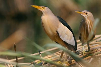 Ten kuzyn bąka jest od niego znacznie mniejszy. Również jego głos godowy nie jest tak imponujący -są to krótkie, niegłośne pomruki. Natomiast zaniepokojony przybiera taką samą jak bąk postawę „słupka”.