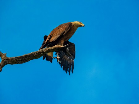 Bielik wschodni jest związany z obszarami podmokłymi, najczęściej przebywa nad brzegami dużych rzek i jezior, gdzie zakłada gniazda na wysokich drzewach. Na takich terenach bieliki wschodnie przebywają zarówno podczas lęgów w Indiach, jak i podczas pozostałej części roku w Mongolii i Azji Centralnej. Obszary podmokłe w całej Azji w II połowie XX wieku ulegały olbrzymim przekształceniom: rzeki były regulowane, bagna osuszane, nadrzeczne lasy wycinane, a na to wszystko nałożyło się olbrzymie zanieczyszczenie wód powierzchniowych (nie tylko ściekami bytowymi, ale także – przede wszystkim w dawnym Związku Radzieckim – ściekami przemysłowymi i substancjami radioaktywnymi). To wszystko spowodowało, że bielik wschodni jest obecnie tak rzadkim ptakiem.