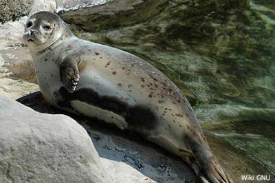 Foka pospolita często poluje stadnie, naganiając sobie wzajemnie zdobycz. Żywi się wieloma gatunkami ryb (chętnie dorszowatymi i śledziami), a także mięczakami i skorupiakami. Czasami w pogoni za ławicami łososi wpływa do rzek.