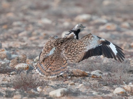 Hubara saharyjska do rozrodu przystępuje raz w roku (w marcu). Samica składa od 2 do 4 jaj. Gnieździ się na ziemi. Inkubacja jaj trwa 24 dni. Po miesiącu młode opuszczają gniazdo.