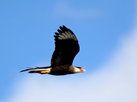 Duży ptak, porównywalny rozmiarem do białozora. Ptak ten jak dotąd nie zaobserwowany na wolności w Europie. W locie na końcu ogona widoczny szeroki, ciemny pas. Po za tym dobrze odznaczają się jasne, zewnętrzne lotki z ciemniejszym zakończeniem.