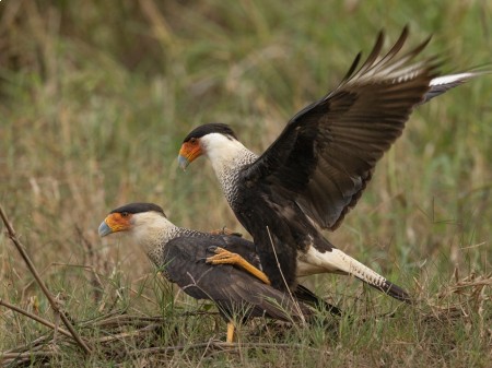 Gnieździ się na drzewie, półce skalnej bądź na ziemi. Może używać także opuszczonych gniazd innych ptaków. Do budowy używa materiałów roślinnych (traw, gałęzi). Samica składa 2-3 jaj. Czas wysiadywania (przez oboje rodziców) wynosi około miesiąca. Pisklęta karmione są przez oboje rodziców. Młode stają się lotne po trzech miesiącach od wyklucia.