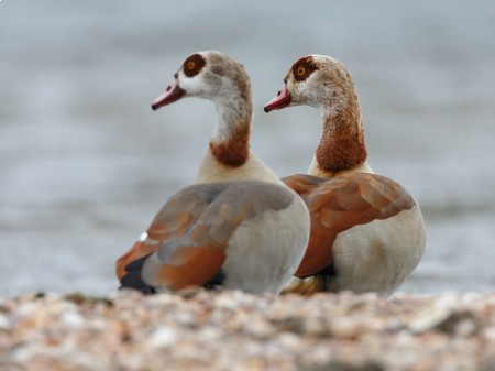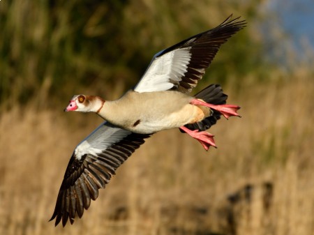 Dosyć duży ptak wodny, mniejszy od gęgawy. W kraju lęgi wyprowadza sporadycznie, rzadko zalatująca, prawdopodobnie są to ptaki zbiegłe z hodowli. W locie widoczne czarne lotki pierwszorzędowe, biały wierzch (z czarnym, wąskim paskiem) oraz spód skrzydła. Tworzy małe stada.
