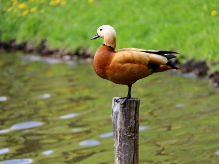 Duży ptak wodny, mniejszy od gęsi zbożowej. Rzadko zalatuje do Polski. Lęgi wyprowadza sporadycznie, są to nierzadko ptaki zbiegłe z niewoli. W locie dobrze widoczna biel na pokrywach.