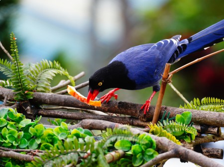 Kitta modra jest wszystkożerna. W jej diecie znaleźć można pokarm zwierzęcy: kręgowce (ssaki, inne ptaki ich jaja, gady, płazy), padlinę, bezkręgowce (owady) oraz pokarm roślinny (nasiona i owoce). Kitta modra przechowuje pokarm na ziemi przykrywając go liśćmi lub umieszcza go na gałęziach.