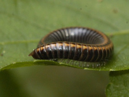 Ciało wydłużone, cylindryczne, pokryte twardym, połyskującym pancerzem. Zbudowany jest z głowy, tułowia i odwłoka. Barwa ciała czarna lub brązowoczarna. Wzdłuż ciała występują dwa rzędy żółtych bądź czerwonawych pasków. Głowa wyraźnie wyodrębniona od tułowia. Na niej znajduje się jedna para krótkich czułek. Występują oczy proste. Na spodniej stronie głowy umiejscowiony jest otwór gębowy. Narząd gębowy typu gryzącego. Tułów składa się z 35-55 segmentów. Na prawie każdym segmencie (poza kilkoma pierwszymi i ostatnim) znajdują się dwie pary odnóży. Odnóża krótkie. Samice są większe od samców.