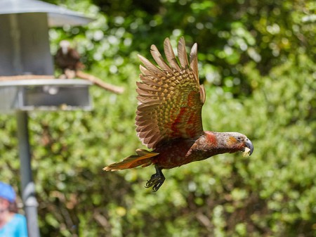 Nestor kaka jest ptakiem wszystkożernym. Żywi się pokarmem roślinnym (owocami, nasionami, nektarem, pąkami i kwiatami) oraz zwierzętami bezkręgowymi (owadami i ich larwami).