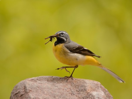 W diecie pliszki górskiej dominują bezkręgowce (owady i ich larwy, mięczaki). Pokarm zdobywa głównie na ziemi, jak również w locie.