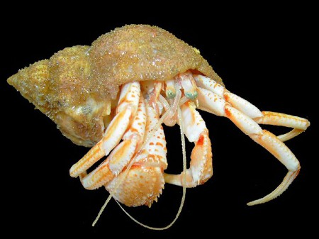 Pustelnik bernardyn należy do rzędu dziesięcionogów. Na głowotułowiu znajdują się dwie pary czułków, pierwsza para jest krótka, druga bardzo długa. Oczy są na słupkach. Odwłok jest delikatny, długi, skręcony w prawo. Na odwłoku brak pancerza, w związku z tym pustelnik kryje się w znalezionych muszlach (po ślimakach). W miarę wzrostu pustelnik zmienia muszlę na większą. Barwa ciała czerwonawa lub brązowawa. Występuje pięć par odnóży. Pierwsza para odnóży jest przekształcona w ogromne, asymetryczne szczypce. Prawe szczypce są znacznie większe od lewych. Dwie kolejne pary są odnóżami krocznymi. Pozostałe odnóża są zredukowane.