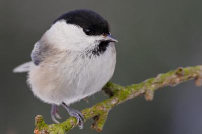 Sikora czarnogłowa posiada wierzch ciała szary, spód białawy, na złożonym skrzydle widać niewyraźne białawe lusterko. Na wierzchu głowy znajduje się matowa, czarna czapeczka, na podgardlu czarna plamka, policzki są białawe. Dymorfizm płciowy nie występuje. Osobniki młodociane są nie do odróżnienia od młodych sikory ubogiej.