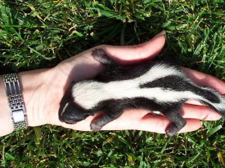 Skunks zwyczajny to gatunek poligeniczny. Opiekę nad potomstwem pełni samica. Do rozrodu przystępuje raz w roku. Rozród odbywa się między lutym a kwietniem. W przypadku straty miotu przystępuje drugi raz do rozrodu w maju. Ciąża trwa 2-3 miesiące. Samica rodzi od 2 do 10 młodych. Młode rodzą się ślepe i nagie, początkowo są zależne od matki. Samica karmi młode mlekiem do dwóch miesięcy. Między 6 a 12 miesiącem młode staja się niezależne. Dojrzałość płciową osiąga w pierwszym roku życia. W naturze żyje krótko, do 7 lat.