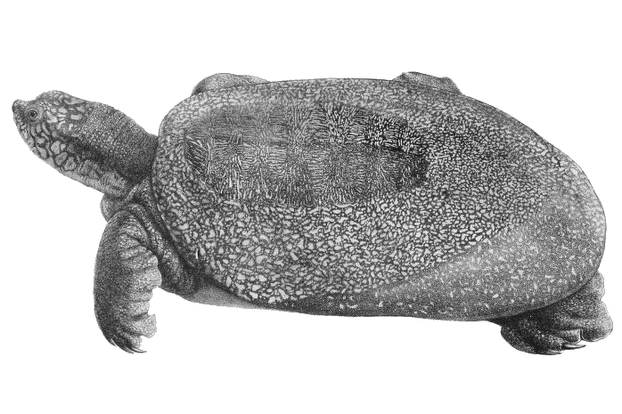 To jeden z największych słodkowodnych żółwi świata: osiąga długość karapaksu do około 109 cm i masę ciała 120–140 kg.